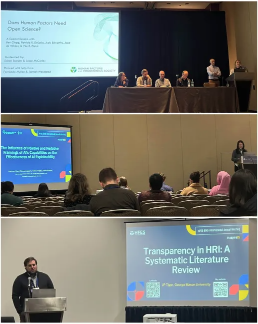 Our Principal Investigator, Eileen, moderated an interesting and engaging panel discussion that brought together diverse perspectives on the topic of open science in human factors. Moreover, our students also showcased their research work: Toey, a PhD student, delivered a talk on her ongoing research in AI Explainability, while JP, a master’s student, gave a lightning talk on his collaborative project with the HRI lab on understanding transparency in human-agent interaction.